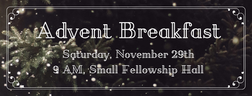 Sat. 11/29 Breakfast + Advent Decorating, 9 AM